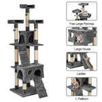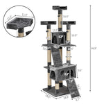 Are you searching for a toy to your lovely cat? This 66" Sisal Hemp Cat Tree Tower is highly recommended to you. It's made of plush fabric, sisal rope , particleboard, which is sturdy, concise and environmentally friendly.2 spacious hideaway houses offer super soft and warm lounging spots, sisal rope coiled posts help develop positive scratching habit, 3 top perches platform to enjoy the feeling of being at the top of the world and sit on to look out the window, multi-layer tower meets the climbing nature of kittens. With this cat condo, your kitty could enjoy all day on this tree.Just buy it for your beloved cat!