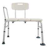 Reduce the risk of injury with this product by keeping you safe when entering and exiting your shower or bathtub. Upgrade your bathroom with our Medical Plastic Tub Transfer Bench with Backrest; the ideal accessory for anyone who has difficulty getting in and out of the tub or shower. This seat features a reversible bench and extension legs with extra-large suction cups that help lock it into place for added versatility and safety. This Medical Transfer Bench has a sturdy A-frame design with a backrest that ensures maximum stability. It is also constructed of durable, blown plastic that is designed to with stand daily use.