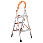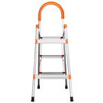 This is our Foldable 3 Steps Ladder, which is ideal for most tasks around the kitchen, office, bathroom, and garage. Whether it's reaching a high cabinet, changing the light bulb or washing the windows, our product will make it easier to get any job done. The 3-Step Aluminum Alloy Stool comes fully assembled. While Step Ladder is engineered to be lightweight, its heavy duty construction can hold 330 lbs of weight. There are four thick rubber pad on the bottom of four legs, provide safety when you using it. It will be very simple to storage and transport for its folding and lightweight features. Our folding 3 Step Stool also will hold up well to repeated use. It's an ideal choice either your home or shop!