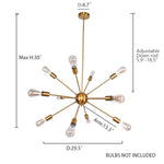 ★ Easy to Install:This sputnik chandelier includes all mounting hardware for quick and easy installation-All 12 arms are pre-wired and pre-threaded, no assembly any more.The sputnik chandeliers package includes all the necessary assembling and installation parts along with clearly marked cords.We also provide a video version of the installation instructions, please request from customer service.