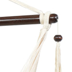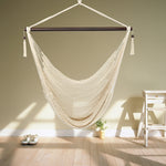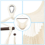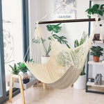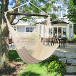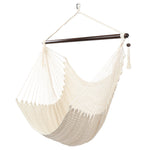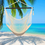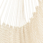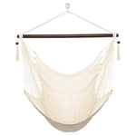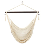 Tightly woven from soft-spun polyester ropes, this Caribbean Large Hammock Chair is not only soft and comfortable but also weather durable. The wide 46" spreader bar holds the chair open to the perfect width, keeping the hammock sturdy while allowing for an even disbursement of weight to withstand up to 7.7lbs of load. It is also easy to set up. You can hang it onto trees, porches, porches, fun rooms or a separately sold hanging chair frame. Swinging tassels on the bar add a touch of simple elegance to the whole design.