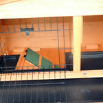 This high quality large Rabbit House Chicken Coop is made of fully treated and grooved wood, coated with water based preservative to help last through the seasons. This house is designed with a living room for sleeping, and running area for playing. The green felt sloping roof can protect the coop from water penetration. The coop is very durable and would make a wonderful home for your rabbits or chickens. Your pets will love it!