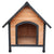 This Dog House offers your pet comfort and functionality in a great looking dog house. Give your dog a comfy hideaway with this wooden Dog House. Constructed of durable fir, this solidly built dog house stands up to the most abusive weather conditions. The A-frame style roof is covered with durable red asphalt. The adjustable, extra-high plastic-tipped feet allow you to level the house on uneven ground and also provide extra circulation underneath. This will help keep the floor cool in the summer and warm/dry in the winter. Don't hesitate to get one for your pet!