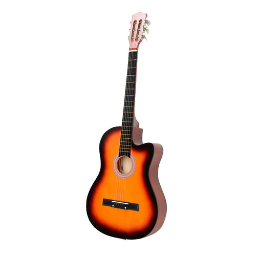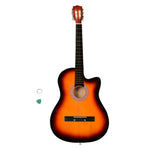 Are you planning to learning guitar? Do you still annoy which guitar you should choose? Do not worry again! Here is our wonderful 38 Inch Cutaway Acoustic Guitars with Guitar Plectrum Sunset we highly recommend to you. Made of high quality material, our acoustic guitar is durable for your long term use. With humanized but cool design, it makes you look attractive and charming. Additionally, the standard tone from this guitar gives you wonderful audio experience. All of them are reliable and durable. A great gift for yourself!