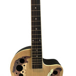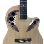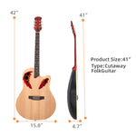 If you want to learn guitar and you are looking for a fashion guitar, then we recommend the 41 inch Cutawary Round Back Acoustic Guitar Spruce Top Grape Hole. This guitar has a fashion grape hole and round black design. Each hole size and position of Grape sound hole can increase the guitar sound. The decals are also stylish. The round-back design allows the sound waves to be quickly reflected towards the sound hole, the sound is clear, and the sound is more effective. The use of spruce panels is sturdy and flexible, which makes the sound transmission of the guitar faster, so it has rich tone changes, which is suitable for various occasions. The adjustable neck design, together with our equipped wrench, can adjust the bending of the neck. The fully closed knob design has good rust resistance and increases the service life of the knob.