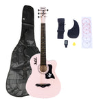 If you like playing guitar, this DK-38C Basswood Guitar Bag Straps Picks LCD Tuner Pickguard String Set is really a good choice. Made of good quality basswood, it is in good condition. This set comes with a bag, straps, picks, LCD tuner, pickguard and strings, excellent to meet all your demand when playing guitar. Featured with excellent pickups, fitted strings and low action, this guitar is amazing. This guitar has a silky balance to the tone that supports vocals beautifully ,and it is an addicting instrument that can be taken everywhere. With an attractive and exquisite finish, it's great for beginners, and you'll be playing your favorite tunes with practice and dedication. Come to play pleasant music with this fantastic guitar set as soon as possible!