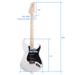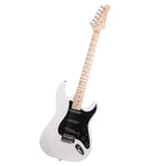 Do you fall in love with this Stylish Electric Guitar with Black Pickguard White the first sight you see it? We offer this electric guitar for its perfect performance, stylish appearance as well as its reasonable price. Designed with a black pickguard, this guitar looks more charming and unique than others. With humanized design and high quality, it is durable to use. What is more, the standard tone from this guitar gives you wonderful audio experience. Featuring comfortable hand feeling and melodious tone quality, this electric guitar will be your regretless choice!