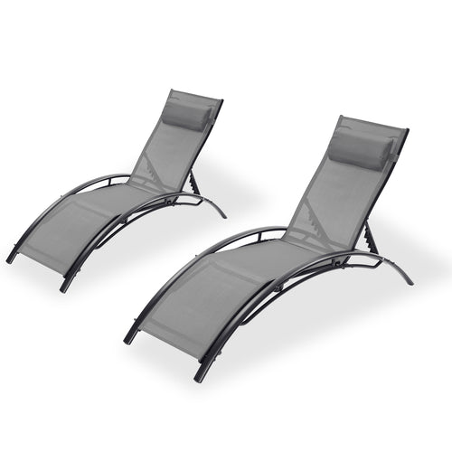 2PCS Set Chaise Lounges Outdoor Lounge Chair Lounger Recliner Chair For Patio Lawn Beach Pool Side Sunbathing