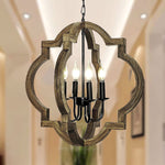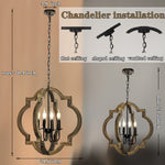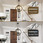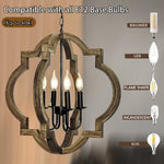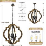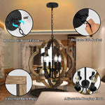 4-Light Rustic Farmhouse Chandelier, 21.7'' Wood Pendant Light Adjustable Hanging Chain, Kitchen Island Chandelier Light Fixture for Dining Room, Living Room, Bedroom, Foyer, Entryway, Hallway