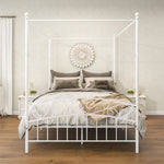 · STURDY STEEL CONSTRUCTION supports up to 550 pounds of weight. This gives you a great night's sleep without the shaking, creaks, and vibrations of lesser frames that keep you awake. Made of rugged steel with four metal canopy columns that will last and look good for years of daily use and enjoyment. Never any fear of bending or warping
