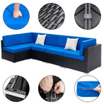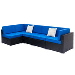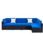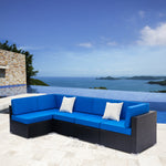 Fully Equipped Weaving Rattan Sofa Set with 2pcs Corner Sofas & 3pcs Single Sofas Black