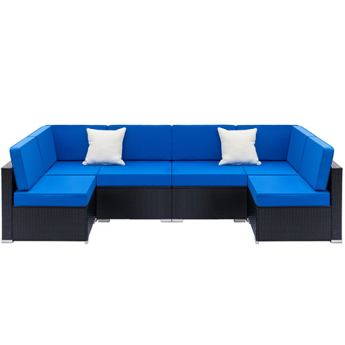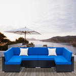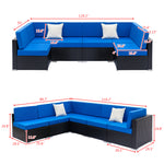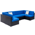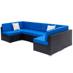Fully Equipped Weaving Rattan Sofa Set with 2pcs Corner Sofas & 4pcs Single Sofas Black