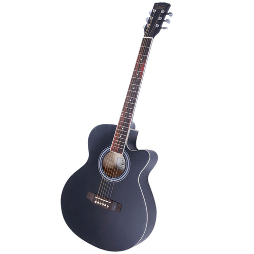 The GT501 40 inch Spruce Front Cutaway Folk Guitar is meticulously crafted with a spruce front and basswood back and sides, producing a nice mellow tone with crisp highs and powerful bass. Rosewood fingerboard has a smooth surface that is stable and impervious to string wear. A classical body design with a single cutaway allows for easier access to all frets. Half enclosed knobs offer easy adjustment of strings. Moreover, the guitar comes with a bag, a protective board and a wrench. Click and order now!