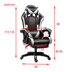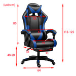 feature: Adjustable: We have put a lot of effort into this gaming chair, whether it is general height adjustment, armrests, and the back of the chair can be adjusted to the position you like, the back of the chair can be adjusted to 135°, and it also has a locking function, which is very convenient . You can rest on it when you are tired from work. You can also keep your feet flat on the floor with your knees at a 90-degree angle to the floor and parallel to your hips, and the 360° free swivel seat helps you find the most comfortable position. Footrest: Do you feel tired from sitting for a long time? of course can. Then you can choose our chair with footrest to relax your feet. When you don't want to sit with your back straight, take out the footrest, lift your feet, turn on your favorite music, and start enjoying the comfort! Don't worry about cleaning, it is also made of high quality PU leather, just wipe it with a soft cloth and it will shine like new. The retractable footpegs are beautiful and sturdy. It is convenient to relax the legs and reduce fatigue. High Back: The ergonomically fitted high back provides lumbar support and naturally follows the natural curve of the spine. This high-back design of our gaming chair makes up for the low back of most computer chairs at present, solves the problem that the head and neck cannot rest on it, and can also keep the sitting posture of the human body free from fatigue. Adjustable Armrests: Our armrests can be adjusted at will, and the soft pads on the armrests keep your hands comfortable. The elbow joint of the keyboard and mouse can be operated at 90° for a long time, which can avoid sitting in a sitting position for a long time, and effectively prevent the shoulders and wrists from being fatigued for a long time. Color mix and match: The mix and match of fabrics is one of the characteristics of gaming chairs, which can well reflect the bright color matching and make people feel good visually! The color of the chair is usually based on black, and then matched with other colors. With the popularity of gaming chairs, the color choices of gaming chairs are also more abundant, which meets the individual needs of consumers. Affordable prices: The materials, frames, cushions and parts of our gaming chairs are basically based on high durability and high bearing capacity, but our prices in the market are more favorable than theirs. ! Sturdy and durable: This gaming chair is made of high-quality PU leather, the interior is constructed with a metal frame, and there are protective panels on both sides of the seat cushion, which ergonomically protects your sitting posture. Durable and comfortable, easy to clean and fade resistant. There are also heavy duty bases and nylon smooth rolling casters for excellent stability and mobility, so it can keep you working, studying, playing or napping in your chair for long periods of time. COMFORT AND RELAXATION: Our interior is filled with high-quality native sponge, which is very comfortable and soft. We also include headrests and lumbar pillows. They can be adjusted at will, and the headrest will relieve your fatigue when your neck is sore from gaming or working with your head down for a long time. When you feel tired from maintaining the same sitting position, please lean back with confidence, it will relax your tired waist energetically. T rod and air rod, tray: The T rod is used to maintain the balance of the backrest and prevent him from shaking and unstable. It is easy to install and can be fixed with three screws. We have passed the BIFMA and SGS international testing and certification for the air rods, so you can buy and use them with confidence. Secondly, our pallets are thickened explosion-proof pallets, which are safe and durable. Worry-Free Purchase: Detailed instructions will be sent to you with all accessories so that you can easily assemble the chair. Prompt reply: Our gaming chairs are suitable for game room, bedroom, office, living room or study. It will make your space more modern and your satisfaction is our top concern. If you have any questions, please contact us. We will get back to you within 24 hours. We believe in the quality of our gaming chairs! It will please you!