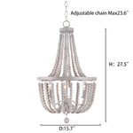 SEFINN FOUR 3-Light Wooden Beaded Chandelier Farmhouse Pandant Ceiling Light Fixture for Dinning Room Kitchen Living Room White