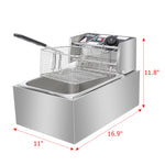 ZOKOP EH81 2500W MAX 110V 6.3QT/6L Stainless Steel Single Cylinder Electric Fryer US Plug